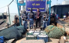 বাঁশখালীতে কোস্টগার্ডের অভিযানে জাল ও সামুদ্রিক মাছসহ ট্রলিং বোট জব্দ