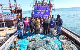 সেন্টমার্টিনে কোস্টগার্ডের অভিযানে ট্রলিং বোট ও জালসহ ১৬ জেলে আটক