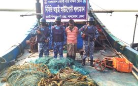 ভোলায় কোস্টগার্ডের অভিযানে অবৈধ ট্রলিং বোটসহ এক জেলে আটক