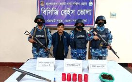 ভোলায় কোস্টগার্ডের অভিযানে অস্ত্র গুলি, হাতবোমা ও গাঁজাসহ আটক ১