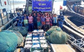 বাঁশখালীতে কোস্টগার্ডের অভিযানে ট্রলিং বোট ও মাছসহ ১৬ জেলে আটক