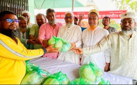 বগুড়ায় ক্ষুদ্র ফল ব্যবসায়ীদের মাঝে ঈদ সামগ্রী বিতরণ