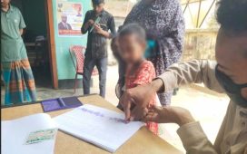 সরিষাবাড়ীতে ভিজিএফ চাল বিতরণে শিশুর টিপসই