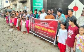 যশোর উদীচী ট্র্যাজিডির বিচার দাবিতে নেত্রকোনায় মানববন্ধন