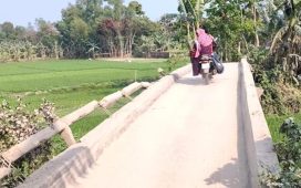 ব্রিজের দুই পাশে নেই রেলিং, ঝুঁকি নিয়ে চলছে যানবাহন