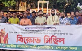 বিএনপির বিরুদ্ধে ষড়যন্ত্রের প্রতিবাদে শেরপুরে যুবদলের বিরাট বিক্ষোভ মিছিল