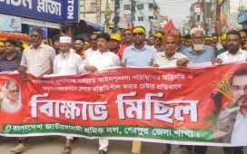 শেরপুর জেলা শ্রমিকদলের বিক্ষোভ