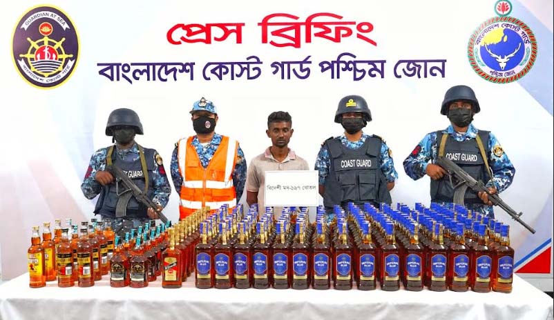 মোংলায় কোস্টগার্ডের অভিযানে বিদেশি মদসহ মাদক পাচারকারী আটক