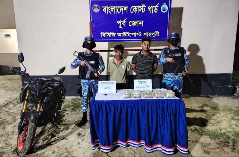 অভিযান চলাকালীন ওই এলাকায় আভিযানিক দল ১ টি সন্দেহজনক মোটরসাইকেলকে থামার সংকেত প্রদান করলে, মোটরসাইকেলের আরোহীরা গতি বাড়িয়ে পালিয়ে যাওয়ার চেষ্টা করে। অতঃপর আভিযানিক দল ধাওয়া করে মোটর সাইকেলসহ ২ জনকে আটক করতে সক্ষম হয়। এসময় তাদের কাছে থাকা ১টি বস্তা তল্লাশি করে প্রায় ২ কোটি ৫৫ লক্ষ টাকা মূল্যের ৫০ হাজার পিস ইয়াবা জব্দ করা হয়।