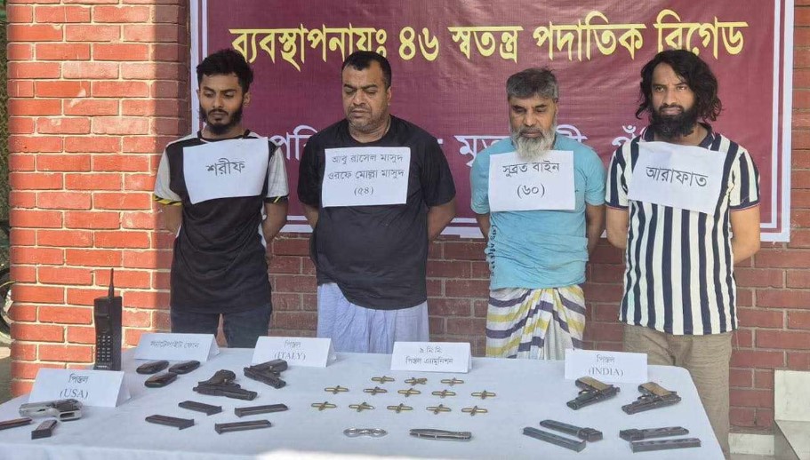 গ্রেপ্তার হওয়া ব্যক্তিরা হলেন— দুই শীর্ষ সন্ত্রাসী সুব্রত বাইন ওরফে ফতেহ আলী, আবু রাসেল মাসুদ ওরফে মোল্লা মাসুদ এবং দুইজন শ্যুটার আরাফাত ও শরীফ। গ্রেপ্তারের সময় তাদের কাছ থেকে উদ্ধার করা হয় ৫টি বিদেশি পিস্তল, ১০টি ম্যাগাজিন, ৫৩ রাউন্ড গুলি এবং ১ টি স্যাটেলাইট ফোন।