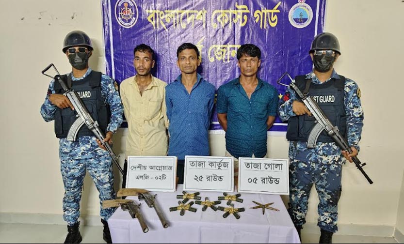 তিনি বলেন, গোপন সংবাদের ভিত্তিতে গত ১ অক্টোবর বুধবার বিকাল ৪ টায় কোস্ট গার্ড স্টেশন মহেশখালী এর একটি অপারেশন দল কক্সবাজারের মহেশখালী থানাধীন কেরুনতলী সংলগ্ন এলাকায় একটি বিশেষ অভিযান পরিচালনা করা হয়। অভিযান চলাকালীন ওই এলাকায় তল্লাশি চালিয়ে অস্ত্র ও গোলাবারুদ ক্রয়-বিক্রয়ের সময় ২টি দেশীয় আগ্নেয়াস্ত্র, রাইফেলের ৫ রাউন্ড তাজা গোলা ও শট গানের জন্য ব্যবহৃত ২৫ রাউন্ড বিদেশি তাজা কার্তুজসহ ৩ জন কুখ্যাত সন্ত্রাসীকে আটক করা হয়। জব্দকৃত আলামত ও আটকৃত ব্যক্তিদের পরবর্তী আইনানুগ ব্যবস্থা গ্রহণের কার্যক্রম প্রক্রিয়াধীন রয়েছে।