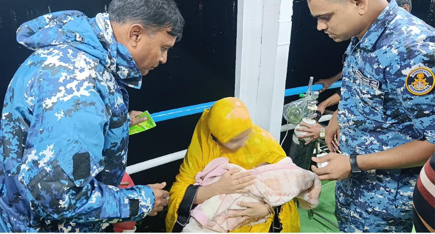 প্রাপ্ত তথ্যের ভিত্তিতে গত ২৫ নভেম্বর ২০২৫ তারিখ সন্ধ্যা ৭ টায় কোস্ট গার্ড স্টেশন পাগলা হতে একটি মেডিক্যাল টিম অক্সিজেন সিলিন্ডারসহ হাই স্পিড বোট যোগে অতি দ্রুত উক্ত লঞ্চে গমন করে। অতঃপর নতুন গ্যাস সিলিন্ডারটি সংযুক্তির মাধ্যমে অসুস্থ শিশুকে ঝুঁকিমুক্ত করা হয়। পরবর্তীতে উন্নত চিকিৎসার জন্য অসুস্থ শিশুকে সদরঘাট থেকে সিভিল অ্যাম্বুলেন্স যোগে ডাঃ এম আর খান শিশু হাসপাতালে (মিরপুর-২, ঢাকা) স্থানান্তর করা হয়।