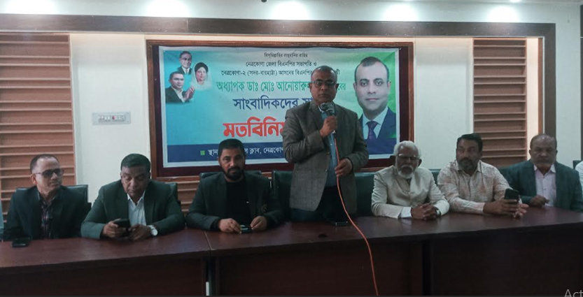 শহীদুল ইসলাম: নেত্রকোনা জেলা বিএনপি’র সভাপতি ও নেত্রকোনা-২(সদর-বারহাট্টা) আসনের বিএনপি’র মনোনীত প্রার্থী ডাঃ মোঃ আনোয়ারুল হক রবিবার (৭ডিসেম্বর) দুপুরে জেলা প্রেসক্লাব মিলনায়তনে গণমাধ্যম কর্মীদের নিয়ে মতবিনিময় সভা করেন।