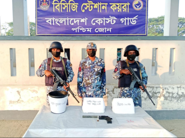 সুন্দরবনের লোকালয় থেকে অস্ত্র গুলি ও হাতবোমা জব্দ করেছে কোস্টগার্ড