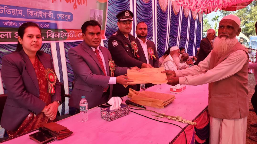 শেরপুরের ঝিনাইগাতীতে জাতির শ্রেষ্ঠ সন্তান বীর মুক্তিযোদ্ধা ও শহীদ পরিবারের সদস্যদের সংবর্ধনা দেওয়া হয়েছে। মঙ্গলবার (১৬ ডিসেম্বর) দুপুরে উপজেলা প্রশাসনের পক্ষ থেকে উপজেলা স্টেডিয়ামে এই সংবর্ধনা দেওয়া হয়। অনুষ্ঠানের শুরুতে ১৪৬জন বীর মুক্তিযোদ্ধা ও শহীদ মুক্তিযোদ্ধা পরিবারের সদস্যদের ফুল দিয়ে বরণ করে নেওয়া হয়। এরপর মুক্তিযুদ্ধে শহীদদের স্মরণে ১ মিনিট নীরবতা পালন করা হয়।