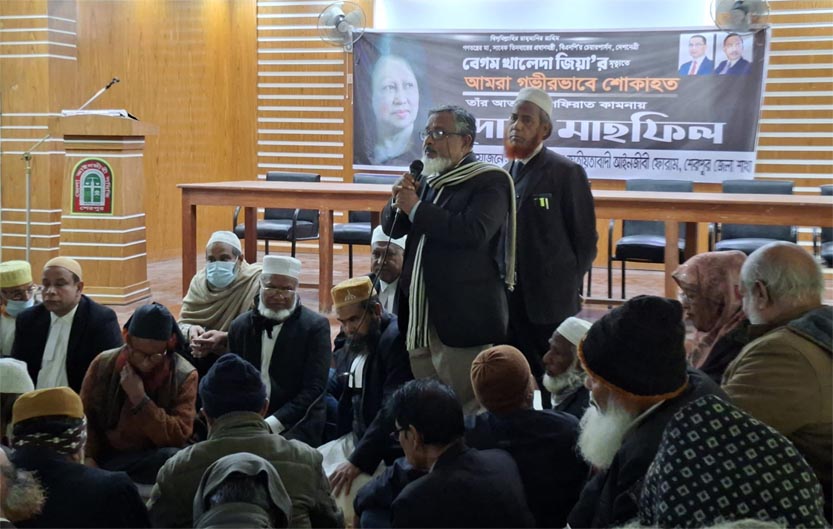 সোমবার দুপুরে জেলা আইনজীবি সমিতির মিলনায়তনে দোয়া ও মিলাদ মাহফিলে প্রধান অতিথি হিসেবে উপস্থিত ছিলেন, জেলা বিএনপির আহ্বায়ক ও বাংলাদেশ জাতীয়তাবাদী আইনজীবি সমিতির সভাপতি এড. সিরাজুল ইসলাম।