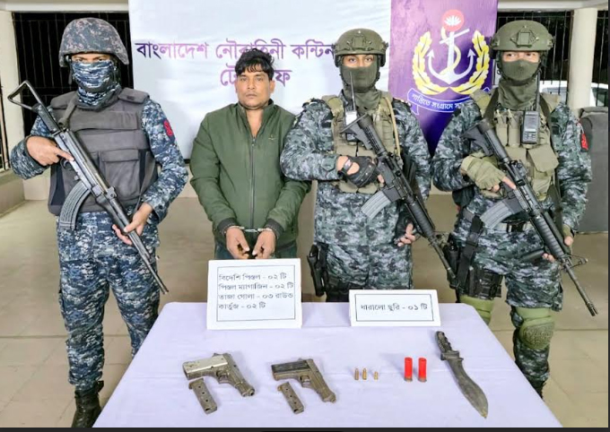 দেশব্যাপী সার্বিক নিরাপত্তা ব্যবস্থা জোরদারকরণ এবং আসন্ন ত্রয়োদশ জাতীয় সংসদ নির্বাচনকে সামনে রেখে অপরাধমূলক কার্যক্রম প্রতিরোধ ও আইন-শৃঙ্খলা পরিস্থিতি সমুন্নত রাখার লক্ষ্যে দায়িত্বপ্রাপ্ত এলাকাসমূহে বাংলাদেশ নৌবাহিনী নিরবিচ্ছিন্নভাবে অভিযান ও টহল কার্যক্রম চালিয়ে যাচ্ছে। এরই ধারাবাহিকতায় গতকাল রবিবার (১৮ জানুয়ারি) দিবাগত রাতে টেকনাফ উপজেলার নাজিরপাড়া এলাকায় নৌবাহিনী অভিযান পরিচালনা করে আগ্নেয়াস্ত্র ও গোলাবারুদসহ একাধিক মামলার ওয়ারেন্টভুক্ত আসামি শামশুল হক ওরুফে বদাফুলাকে আটক করে।