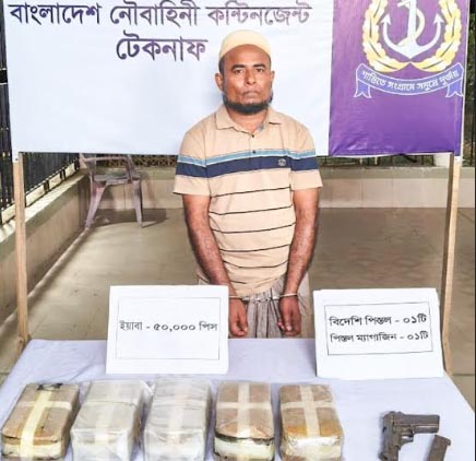 গোপন সংবাদের মাধ্যমে টেকনাফে মোতায়েনকৃত নৌবাহিনীর কন্টিনজেন্ট মাদক পাচারের তথ্য জানতে পারে। প্রাপ্ত তথ্যের ভিত্তিতে নৌবাহিনীর বিশেষায়িত আভিযানিক দল আলীখালী এলাকার জামাই বাজার সংলগ্ন এলাকায় কৌশলগতভাবে ওত পেতে থাকে। এসময় কুখ্যাত মাদক ব্যবসায়ী মোঃ রফিক ওরুফে বরমাইয়া রফিক সিএনজি যোগে উক্ত এলাকায় আগমন করলে তাকে আটক করা হয়। প্রাথমিকভাবে সিএনজিটি তল্লাশি করে কোনো মাদকদ্রব্য পাওয়া না – গেলেও জিজ্ঞাসাবাদে জানা যায়, মাদকের চালানটি তার দুইজন সহযোগীর মাধ্যমে চৌধুরীপাড়া ব্রিজ সংলগ্ন একটি মাটির স্তুপের নিচে পুঁতে রাখা হয়েছে। উক্ত তথ্যের ভিত্তিতে নৌবাহিনীর আভিযানিক দলটি তাৎক্ষণিক চৌধুরীপাড়া ব্রিজ সংলগ্ন এলাকায় তল্লাশি অভিযান পরিচালনা করে। তল্লাশিকালে মাটির স্তুপের নিচে পুতে রাখা একটি ব্যাগ হতে ৫০ হাজার পিস ইয়াবা এবং ০১ টি বিদেশি পিস্তল উদ্ধার করা হয়। অভিযান শেষে আটককৃত মাদক ব্যবসায়ীর বিরুদ্ধে আইনানুগ ব্যবস্থা গ্রহণের লক্ষ্যে উদ্ধারকৃত অস্ত্র ও মাদকসহ টেকনাফ থানায় হস্তান্তর করা হয়। থানা সূত্রে জানা যায়, আটকৃত মাদক কারবারির বিরূদ্ধে টেকনাফ থানায় মাদক পাচারের একাধিক অভিযোগ রয়েছে।