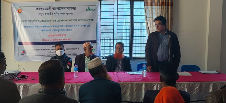 বাংলাদেশ পেট্রোলিয়াম এক্সপ্লোরেশন অ্যান্ড প্রোডাকশন কোম্পানি লিমিটেড (বাপেক্স)-এর উদ্যোগে অনুসন্ধান কূপ খনন প্রকল্পের পরিবেশগত প্রভাব নিরূপণ বিষয়ে জনসচেতনতামূলক মতবিনিময় সভা অনুষ্ঠিত হয়েছে।