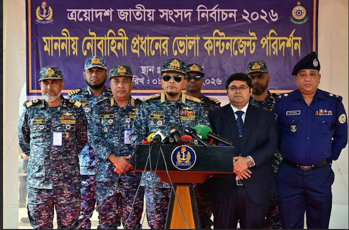 আসন্ন ত্রয়োদশ জাতীয় সংসদ নির্বাচন ও গণভোট-২০২৬ অবাধ, সুষ্ঠু, নিরপেক্ষ ও শান্তিপূর্ণভাবে আয়োজনের লক্ষ্যে বাংলাদেশ নৌবাহিনী ‘ইন এইড টু সিভিল পাওয়ার -এর আওতায় ১৭টি সংসদীয় আসনে ২৪টি উপজেলা ও ২টি সিটি কর্পোরেশনে দায়িত্ব পালন করছে। এ প্রেক্ষিতে আজ রবিবার (৮ ফেব্রুয়ারী ) নৌবাহিনী প্রধান এডমিরাল এম নাজমুল হাসান চরফ্যাশন ও ভোলা পরিদর্শন করেন। পরিদর্শনকালে নৌবাহিনী প্রধান নির্বাচনী দায়িত্বে নিয়োজিত নৌ কন্টিনজেন্টসমূহের সার্বিক কার্যক্রম, নিরাপত্তা ব্যবস্থা ও প্রস্তুতি সরেজমিনে পর্যবেক্ষণ করেন।