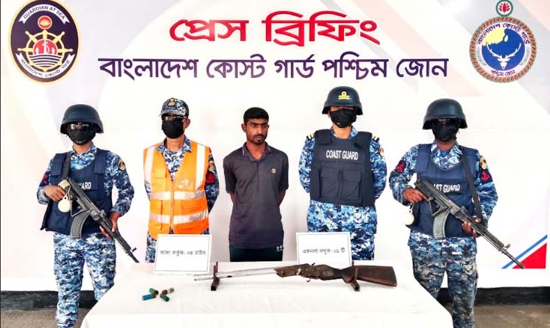 গোপন সংবাদের ভিত্তিতে অভিযান পরিচালনা করে সুন্দরবনের শিবসা নদী এলাকা থেকে অস্ত্র ও গোলাবারুদসহ বনদস্যু দয়াল বাহিনীর এক সদস্যকে আটক করেছে কোস্ট গার্ড পশ্চিম জোন। মঙ্গলবার (১০ মার্চ) বিকেলে কোস্টগার্ড মিডিয়া কর্মকর্তা লেফটেন্যান্ট কমান্ডার সাব্বির আলম সুজন এ তথ্য জানান।