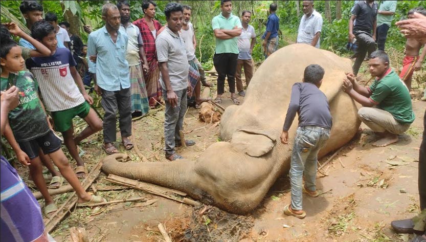 গারো পাহাড়ের দাওধারায় বিদ্যুতের তারে জড়িয়ে বন্য হাতির মৃত্যু