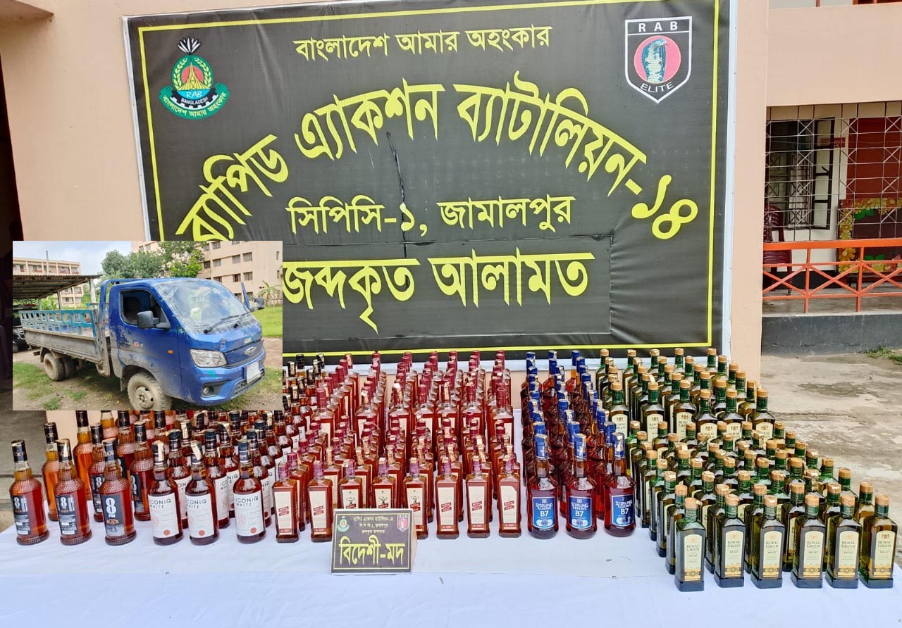 সিপিসি-১, র‌্যাব-১৪, জামালপুর ক্যাম্পের দেয়া প্রেসবিজ্ঞপ্তিতে জানানো হয়, ১১ জুলাই সকালে গোপন খবর পেয়ে সিপিসি-১, র‌্যাব-১৪, জামালপুর ক্যাম্পের একটি আভিযানিক দল নালিতাবাড়ীর সীমান্তবর্তী এলাকায় অভিযান পরিচালনা কর। এসময় র‌্যাবের উপস্থিতি টের পেয়ে পিকআপ চালকসহ মাদক কারবারিরা পিকআপ নিয়ে দ্রুতগতিতে পালিয়ে যাওয়ার চেষ্টা করে। র‌্যাবের টহল গাড়ি পিকআপ ভ্যানের পিছু নিয়ে ধাওয়া করে। পিকআপটি নালিতাবাড়ী পশ্চিম চাঁদগাও গ্রামের কাঁচা রাস্তায় এসে জনৈক মোঃ মোফাজ্জাল হোসেন এর ভূসি দোকানের সামনে পিকআপ ভ্যানটি রেখে কৌশলে পালিয়ে যায়। পিকআপ ভ্যানে তল্লাশি করে ২৬০ বোতল ভারতীয় বিদেশী মদ উদ্ধার করে জব্দ করা হয়। উদ্ধারকৃত বিদেশী মদের আনুমানিক অবৈধ বাজার মূল্য ১২ লক্ষ ৭২ হাজার টাকা।