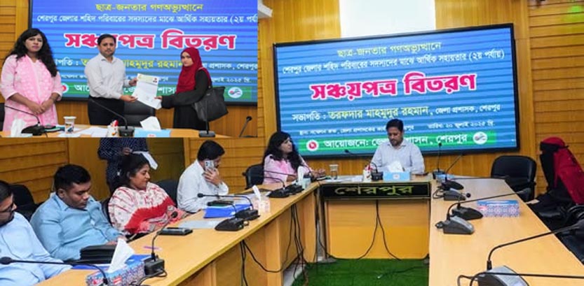 শেরপুরে জুলাই গণঅভ্যুত্থানে শহিদ পরিবারের মাঝে সঞ্চয়পত্র বিতরণ