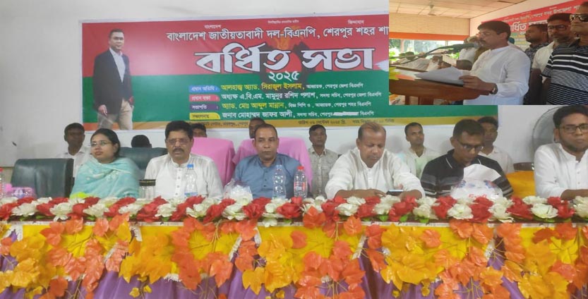 শেরপুর সদর উপজেলা বিএনপির আহ্বায়ক আলহাজ্ব হযরত আলীর সভাপতিত্বে ও সদস্য সচিব সাইফুল ইসলামের সঞ্চালনায় সদর উপজেলা বিএনপির এবং শহর বিএনপির আহ্বায়ক পিপি এডভোকেট আব্দুল মান্নানের সভাপতিত্বে ও সদস্য সচিব আবু জাফরের সঞ্চালনায় শেরপুর পৌর বিএনপির পৃথক বর্ধিত সভা অনুষ্ঠিত হয়।