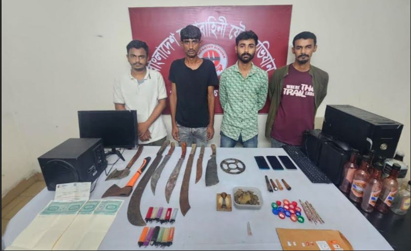 আটককৃতরা হলেন- আবির হোসেন বিদ্যুৎ (২৭), ওয়াজ মন্ডল (৩৬), মাসুম আলম নাঈম (২৭) ও মেহেদী হাসান (২৩)।