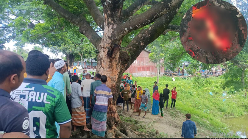 স্কুলছাত্রী আশামনি খাতুন বলেন, আমি সকালে স্কুলে এসে শুনতে পাই গাছের ভেতর আগুন জ্বলছে। পরে বান্ধবীদের সঙ্গে এখানে দেখতে এসেছি।