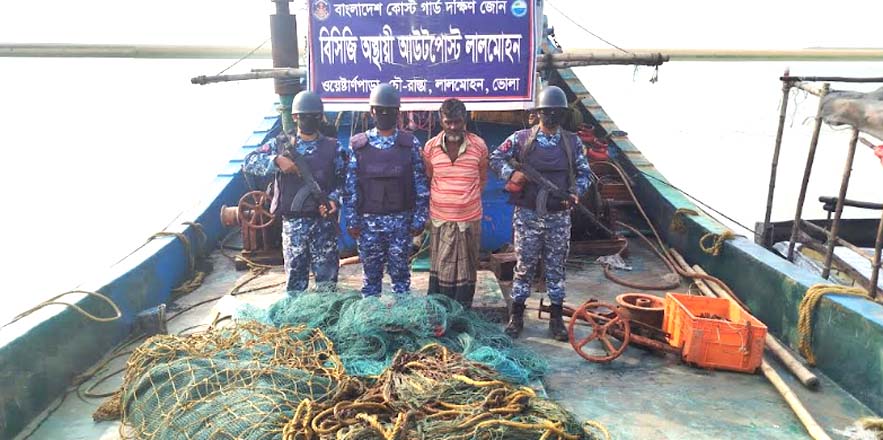 তিনি বলেন, গোপন সংবাদের ভিত্তিতে ২৩ ডিসেম্বর মঙ্গলবার বিকাল ৩টায় কোস্ট গার্ড স্টেশন লালমোহন কর্তৃক ভোলার লালমোহন থানাধীন চর উমেদ পাংগাশিয়া সুলিজ ঘাট এলাকায় একটি বিশেষ অভিযান পরিচালনা করা হয়। অভিযান চলাকালীন উক্ত এলাকা হতে ১টি অবৈধ আর্টিসানাল ট্রলিং বোট জব্দ করা হয়। পরবর্তীতে জব্দকৃত ট্রলিং বোটে তল্লাশি চালিয়ে ৯০ হাজার টাকা মূলের ৩ টি ট্রলিং জালসহ ১ জন জেলেকে আটক করা হয়।