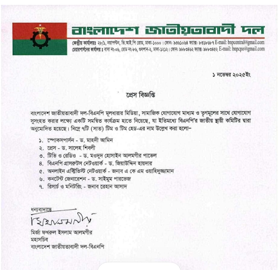 দলীয় নেতারা জানিয়েছেন, নতুন এই কাঠামোর মাধ্যমে বিএনপি তার যোগাযোগ নেটওয়ার্ককে আরও শক্তিশালী করতে চায়, যাতে মাঠপর্যায়ের বার্তা, জনমত ও রাজনৈতিক কার্যক্রম দ্রুত এবং সঠিকভাবে গণমাধ্যম ও জনগণের কাছে পৌঁছানো যায়।