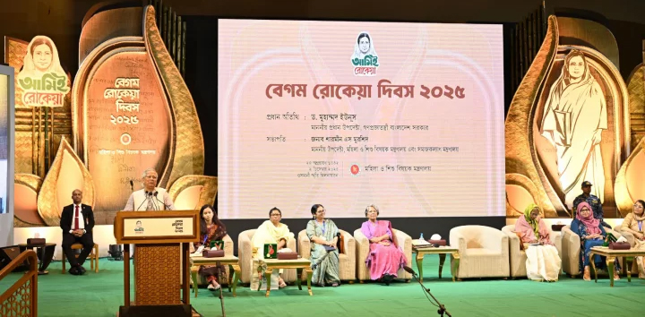 আজ মঙ্গলবার সকালে রাজধানীর ওসমানী স্মৃতি মিলনায়তনে নারী ও শিশু বিষয়ক মন্ত্রণালয়ের উদ্যোগে বেগম রোকেয়া দিবস–২০২৫ উদযাপন ও সম্মাননা প্রদান অনুষ্ঠানে প্রধান অতিথির বক্তব্যে তিনি এসব কথা বলেন।