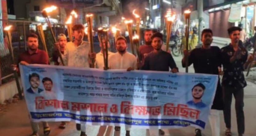 রোববার রাতে জামালপুর শহর ছাত্র অধিকার পরিষদের সদস্য সচিব রাকিবুল ইসলাম রাকিবের নেতৃত্বে মশাল মিছিলটি স্থানীয় রেল গেইট থেকে বের হয়ে শহর পদক্ষিন শেষে দয়াময়ী চত্বর গিয়ে শেষ হয়।